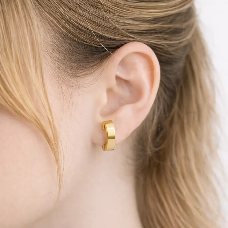 حلق هوجي ذهبي عريض – تصميم كلاسيكي لامع -ستانلس ستيل Gold Chunky Huggie Earrings – Polished Classic Design – Stainless Steel