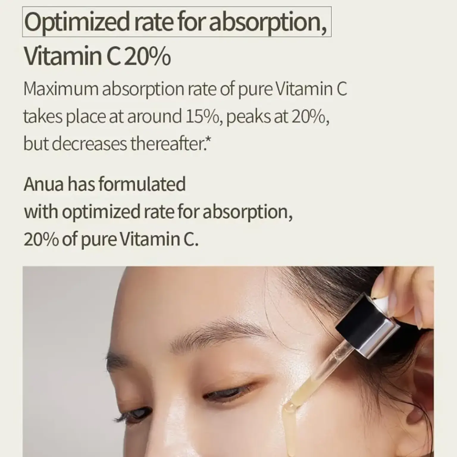 ودعي البقع الباهتة واحصلي على بشرة مشرقة وصافية مع سيروم الليمون الاخضر من Anua. يتميز هذا السيروم بتركيبة متطورة تحتوي على 20% من فيتامين سي النقي (Pure Vitamin C)، وهي النسبة المثالية التي تضمن اقصى امتصاص وفعالية داخل الجلد دون التسبب في تهيج. مستخلص من الليمون الاخضر الغني بمضادات الاكسدة، ليعمل بفعالية على تفتيح التصبغات، تقليل مظهر بقع الشمس، وتوحيد لون البشرة بشكل ملحوظ. التركيبة مدعمة بفيتامين E لتعزيز نضارة البشرة وحمايتها، مما يجعله الحل الامثل للبشرة المجهدة التي تحتاج الى حيوية واشراقة زجاجية فورية.