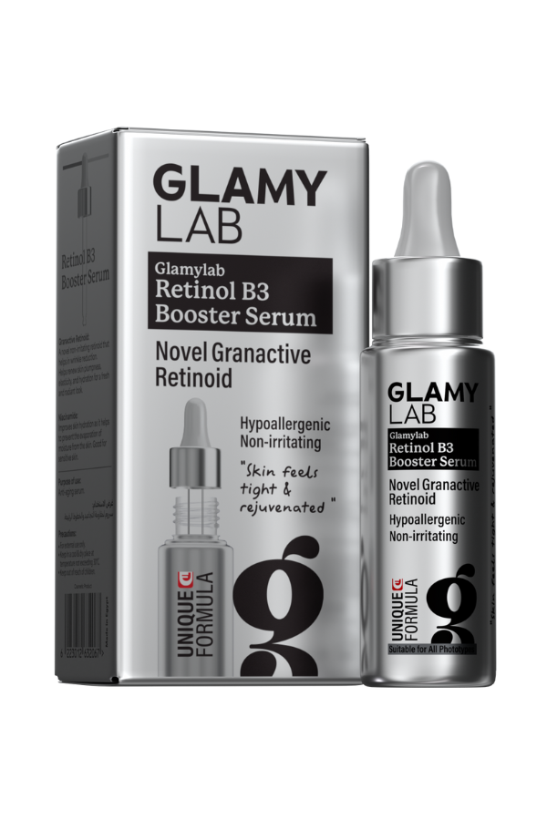 Glamy Lab Retinol B3 Booster Serum بتركيبة تحتوي على Novel Granactive Retinoid وVitamin B3 للمساعدة على تجديد البشرة وتقليل الخطوط الدقيقة وتحسين ملمس البشرة وتوحيد لونها بشكل تدريجي مع عناية لطيفة.