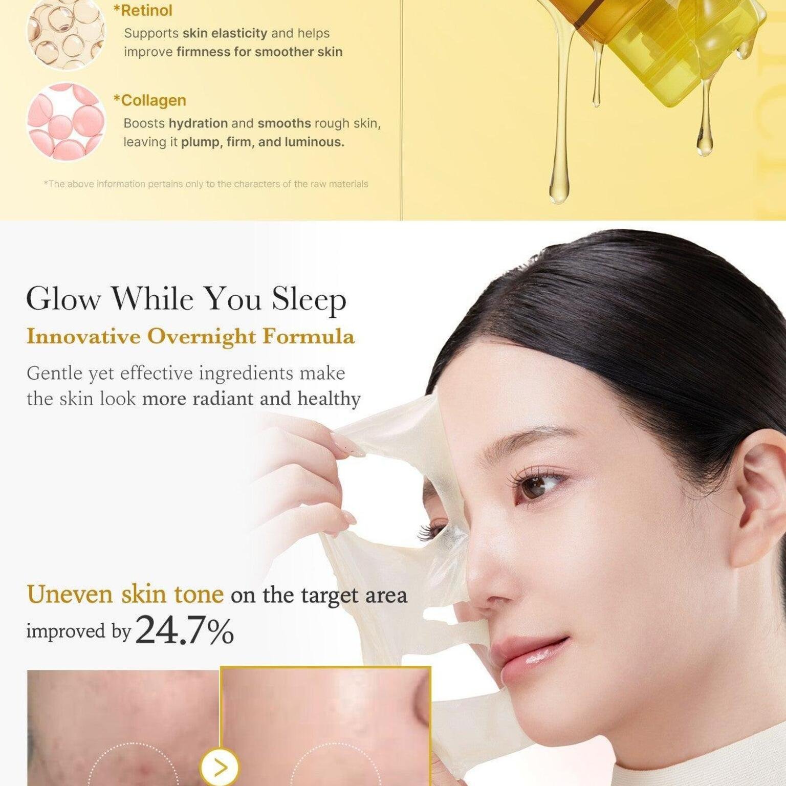 ماسك “التغليف” الليلي هو السر الجديد لبشرة مشدودة ومنورة في الصباح. الماسك ده بيعمل طبقة رقيقة (Film) فوق البشرة وهو اللي بيسموه Wrapping Mask عشان يحبس كل المكونات الفعالة جوه المسام طول الليل. بيعتمد على قوة الكركم (Turmeric) اللي بيحسن مرونة البشرة وبيديها وهج صحي، مع الكولاجين اللي بيملأ الخطوط وبينعم ملمس الجلد الخشن. التركيبة دي بتستهدف البشرة الباهتة والجافة بشكل خاص، وبتحسن تناسق لون الجلد بنسبة ملحوظة جداً (تصل لـ 24.7% في مناطق معينة) خلال أيام بسيطة من الاستخدام.