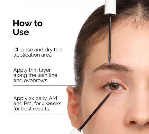 يوضع مرتين يوميًا على خط الرموش والحواجب على بشرة نظيفة وجافة.